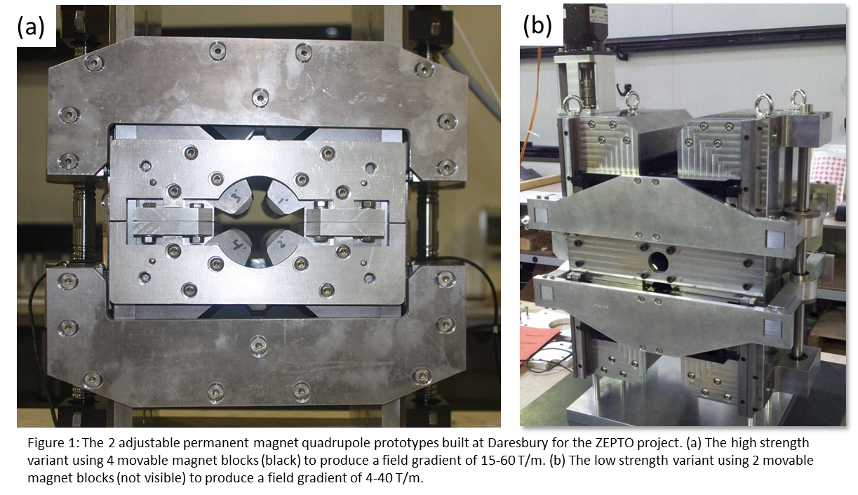 To address this STFC and CERN have created a project to develop steering and focusing magnets that draw no power. The project is named ZEPTO (for Zero-Power Tuneable Optics), and achieves power savings by using large and strong permanent magnets which move to adjust the field strength. This has been attempted in the past, though never on the scale involved here (in terms of size, strength and sheer number of magnets), and only ever in storage rings (e.g. Sirius Synchrotron Light Source, Brazil and the Fermilab Recycler Ring, USA) which do not require the magnets to have a large tuning range.
